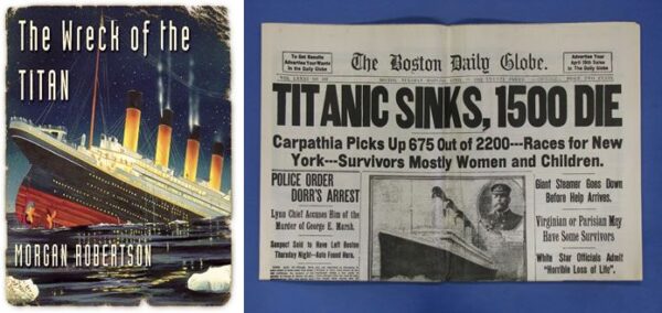 O trágico destino de pessoas a bordo de um imenso transatlântico, que naufragou pela colisão com um iceberg, foi narrado em "Futility" (1898). Sim, o romance foi lançado 14 anos antes da viagem maldita do "Titanic". O nome e o destino de ambos os navios eram os mesmos.